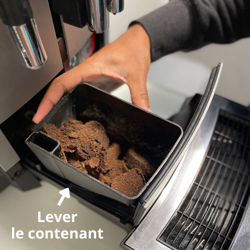 Tirez le bac jusqu’à voir apparaître le bac à marc de café