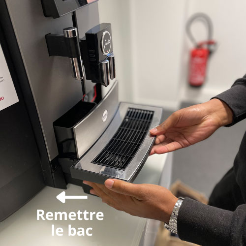 Remettez ensuite le bac d’égouttage à sa place en le poussant délicatement dans la machine.